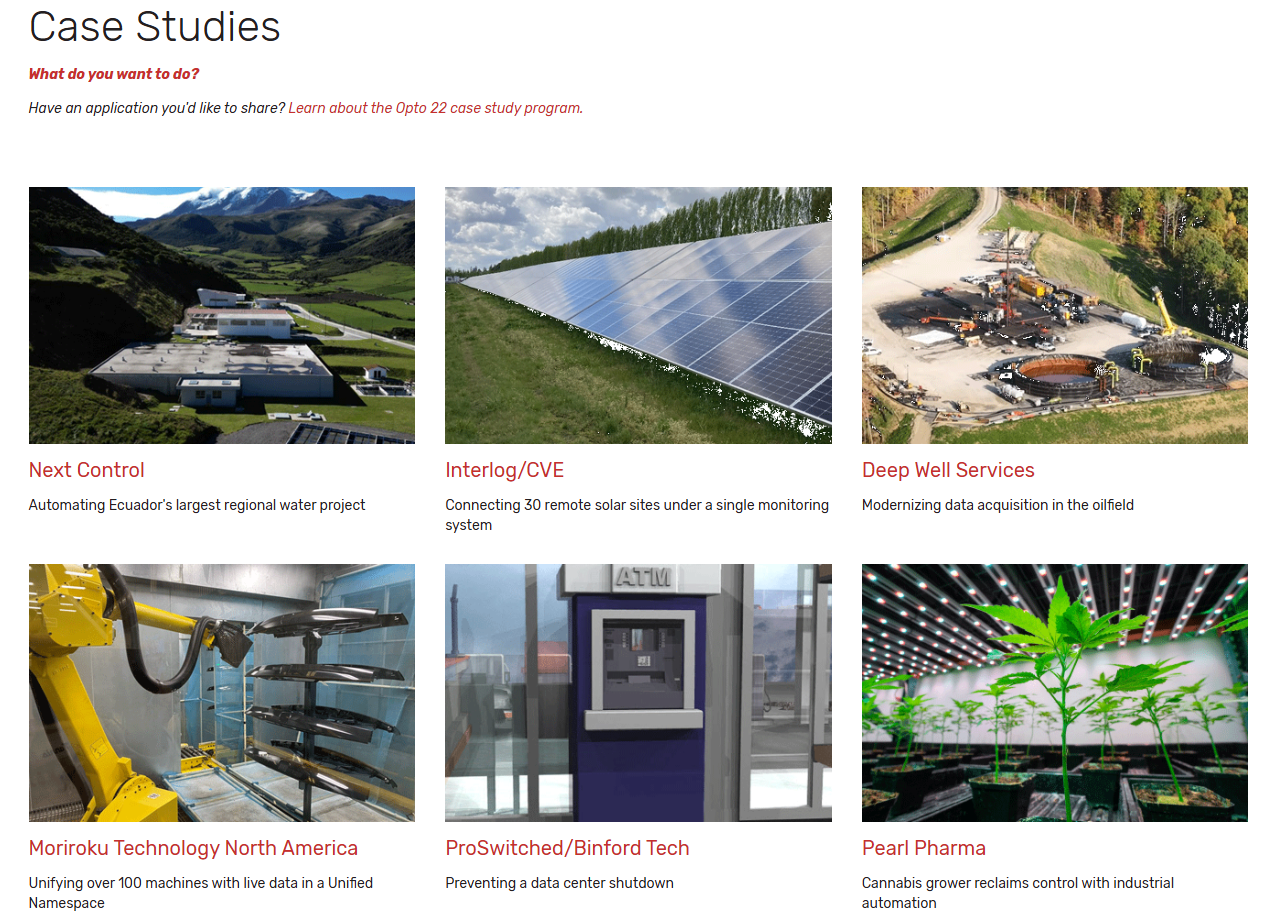 Take a look at the most recent case studies in the Opto 22 case study library—we’ve added quite a few over the past year. You can read each story on the web page or download it as a PDF document.